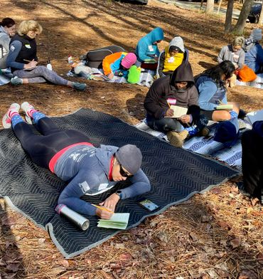 We did some gentle stretching yoga poses to help us warm up before our Gratitude Hike. We hiked a gentle 3 mile hike through the beautiful state park, created mindful art based on the local flora we saw on the hike, and created an essential oil make and take. Each of these practices was rooted in wellness and how we can draw from nature to take care of our minds, bodies, and each other.