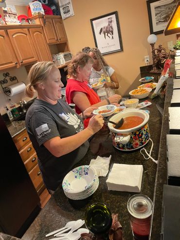 We met at Ron's Place, a rustic, well-loved cabin in Bishop, GA. With the sounds of a creek babbling over high shoals, we did yoga and mindfulness practices, focused on breath, and connected as women who serve. Inside the cabin, the group completed a Wheel of Life guided journaling session, and enjoyed plant-based cooking and, of curse, eating. Strong connections were made and the women went home with wellness practices and resources to incorporate into their own lifestyle routines.