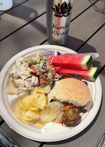 We explored new storytelling and listening circles, built fire in our bodies and challenged our balance with a mobility fitness class led by guest instructor Emily Yenor, had a filling and fueling plant-based feast of summer time favorites curated by Humble Warrior friend Chef Val, and got to experience an on-the-water guided meditation with a serene boat ride, followed by a gentle sound bath on the beach. This was such a special experience of exploring connection, wellness, and adaptability through all the elements of nature, the challenges of life, and the experience of being well together.