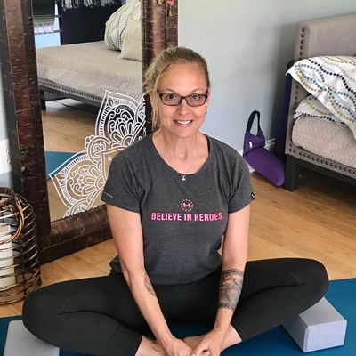 Yoga Model: Shelley is one of our HW retreat graduates. Shelley is a 25 year US Army retired veteran. Her favorite color is purple and she enjoys quilting.